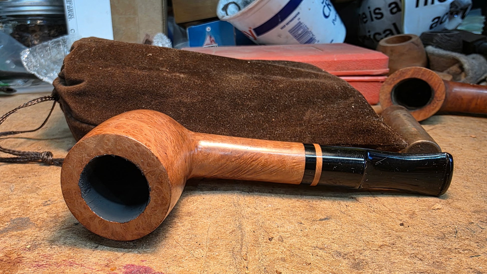 To top it off, a true briar accent ring set into the vulcanite stem adds a unique touch that elevates the whole design.