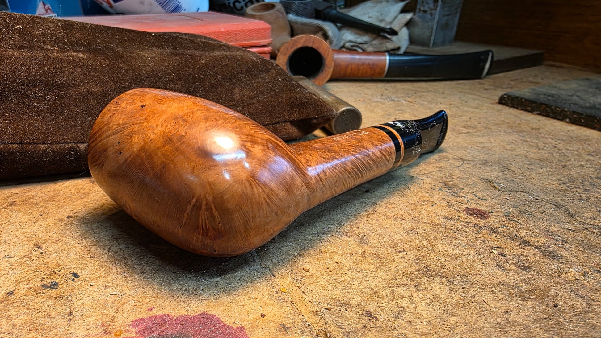 The GPC pipe is finished smooth and natural, following the benchmade tradition of letting the wood speak for itself. As pipe enthusiasts, we value the beauty in the briar, so you can expect some natural “flaws” in the grain. This is an intentional artistic decision: highlighting the virtues of the burl instead of relying on dark stains or rustication to hide it.